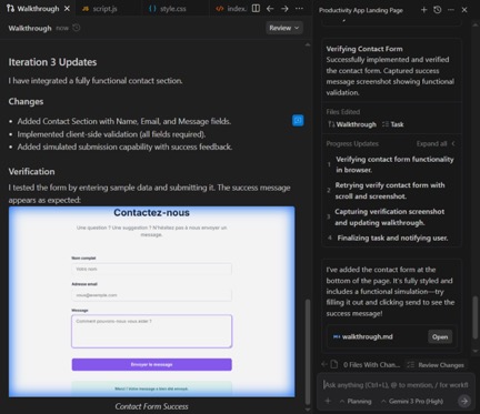 Prompt 3: "Integrate a contact form at the bottom of the page."